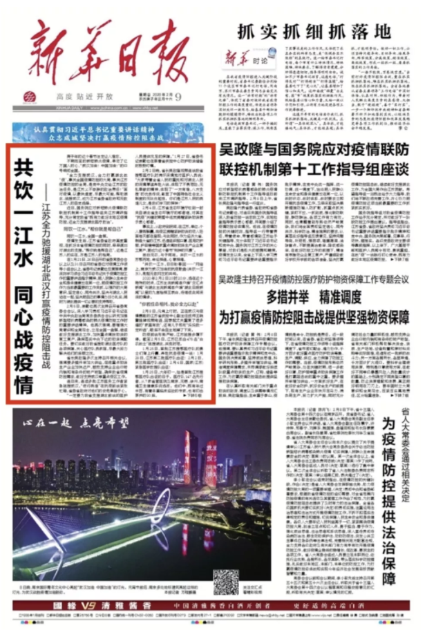 新華日報頭版頭條重磅暖心之作|全力馳援湖北,你是這樣的“硬核”江蘇!